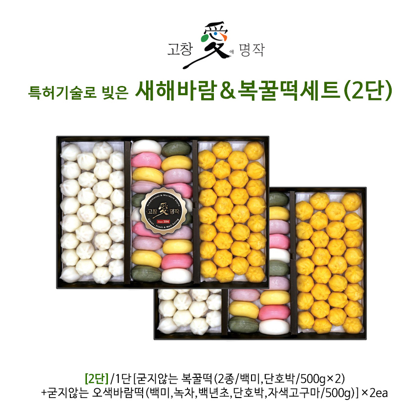 - [고창애명작]특허기술로 빚은 새해바람&복꿀떡세트(2단)